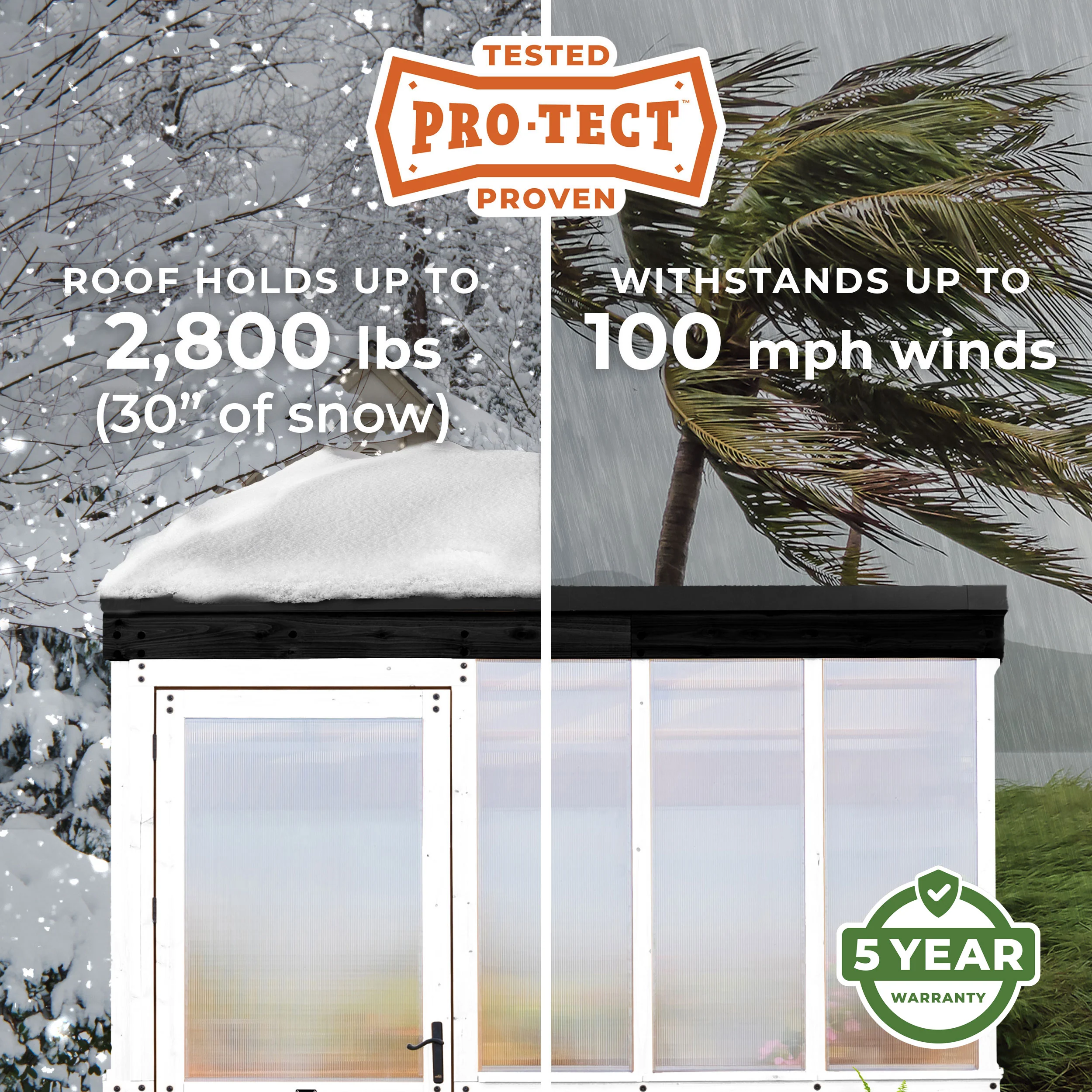 Elevate your gardening projects with the Willow Greenhouse from Backyard Discovery. This modern greenhouse kit offers a compact footprint while providing everything you need to create your dream garden. Built with natural cedar wood and commercial-grade 4-wall polycarbonate panels, this backyard greenhouse is perfect for year-round cultivation of plants, veggies, herbs, and more. The temperature-activated exhaust fan provides forced ventilation while the easy-open window invites pollination and natural air circulation to maintain optimal plant health. This stylish walk-in greenhouse includes spacious staging shelves and a built-in workstation, providing plenty of room for planters, soil, and gardening tools, along with convenient exterior and interior hose hook-ups to make watering your plants a breeze. The integrated PowerPortâ„¢ offers three electrical outlets and USB ports to connect fans, misters, lights, and more, giving you the flexibility to personalize your gardening experience to suit your needs. Built to last, the Willow is Pro-Tectâ„¢ tested and proven to withstand up to 2,800 pounds of roof weight and 100 mph winds*. This ready-to-assemble wooden greenhouse features pre-drilled, pre-cut, and pre-stained pieces, making it easy to start your garden today. Transform your outdoor space into a thriving garden sanctuary and grow your passion with the Willow Greenhouse.